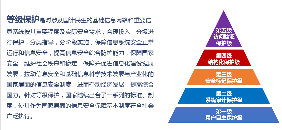 《计算机信息系统安全保护等级划分准则(GB 17859-1999)》,将系统划分为 5 个级别: